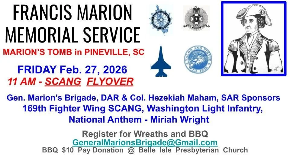 Please join us in Charleston for this very special celebration of the heroes of the American Revolution who descend from our Huguenot ancestors.